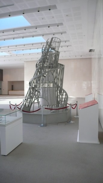 On the way out of the exhibit we came across another exhibit, incongruously displayed in the hotel lobby. Another maquette in fact, another exercise in futurology, in this case a future that never came to pass.  Could it be?  Yes, it is!  It’s the model for Vladimir Tatlin’s Monument to the Third International!
